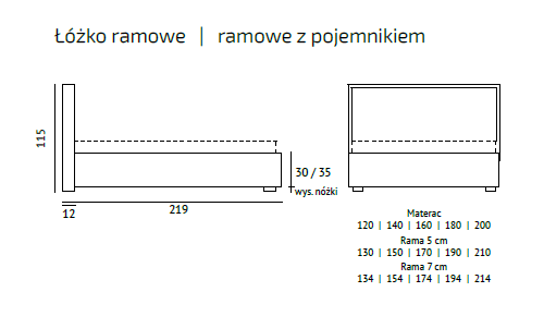 Łóżko IVO oferujemy standardowo w wersji bez pojemnika i bez stelaża (nasza oferta stelaży), lecz można zamówić również wersję z pojemnikiem zawierającym stelaż elastyczny podnoszony za pomocą siłowników gazowych.