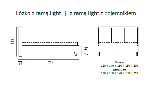 Łóżko ROCCO oferujemy standardowo w wersji bez pojemnika i bez stelaża (nasza oferta stelaży), lecz można zamówić również wersję z pojemnikiem zawierającym stelaż elastyczny podnoszony za pomocą siłowników gazowych.