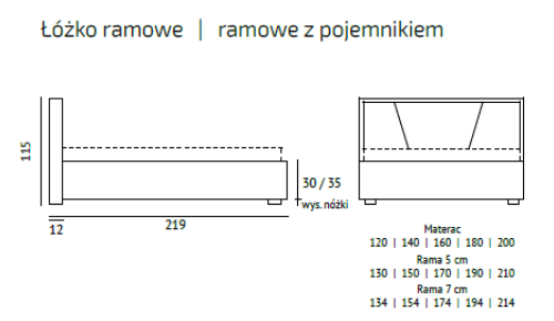 Łóżko VALERIO oferujemy standardowo w wersji bez pojemnika i bez stelaża (nasza oferta stelaży), lecz można zamówić również wersję z pojemnikiem zawierającym stelaż elastyczny podnoszony za pomocą siłowników gazowych.
