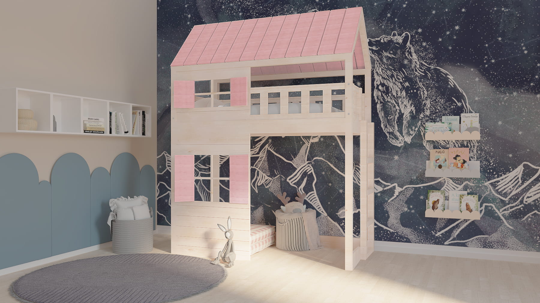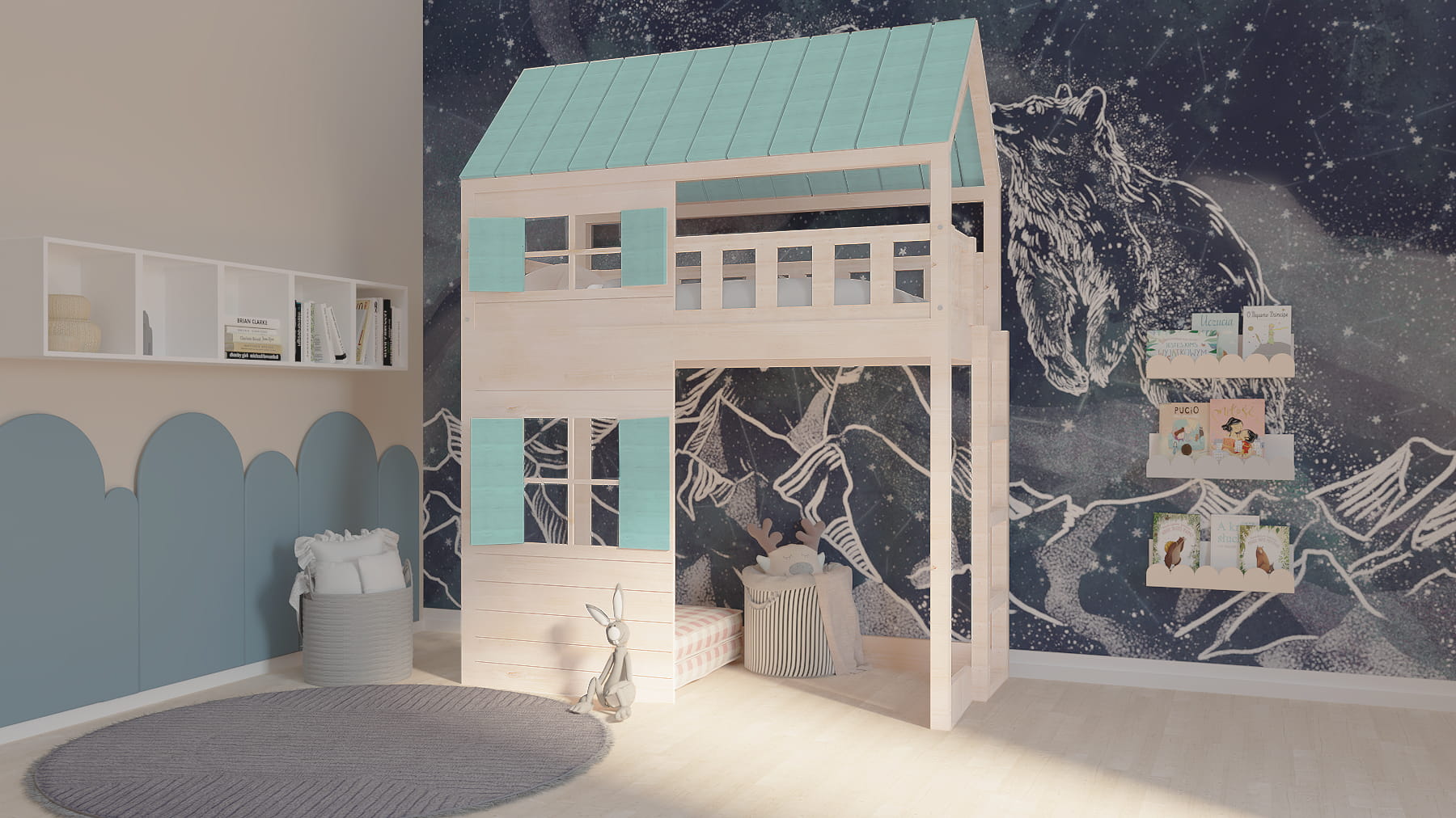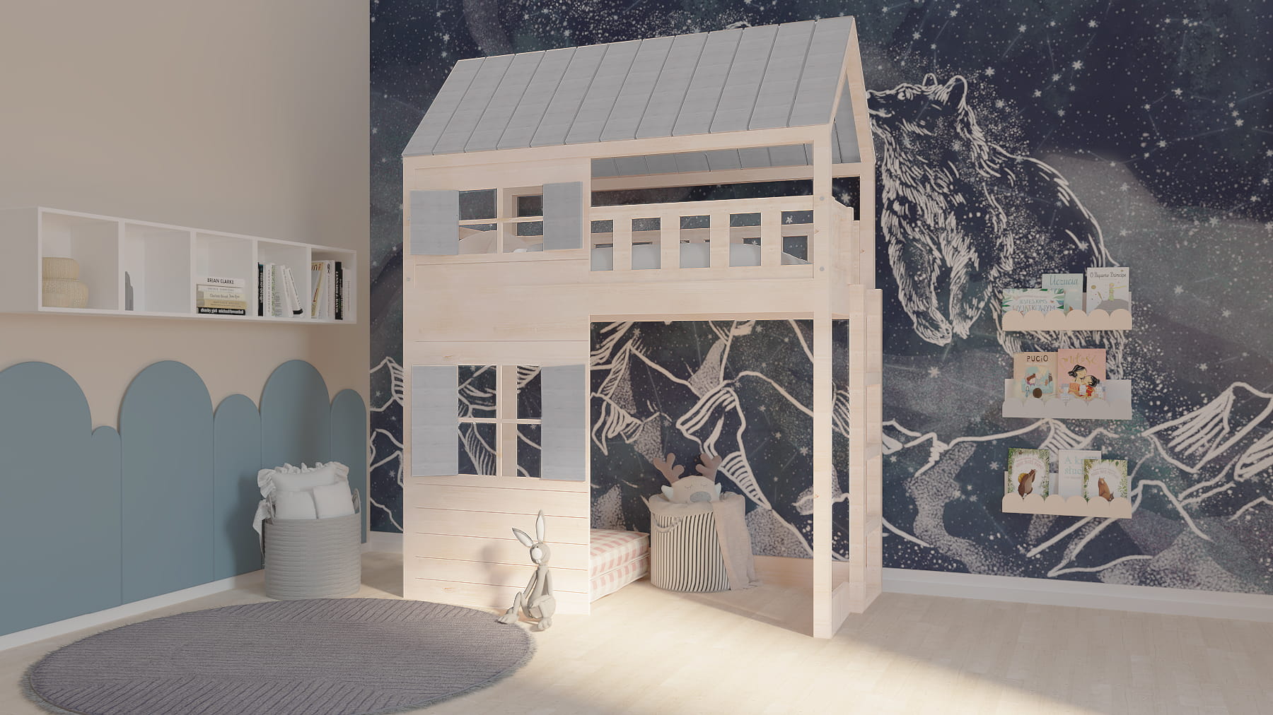 Ten uroczy drewniany mebel w zaczarowany sposób zmieni dziecięcy pokój stając się centrum wypoczynku oraz zabaw. Dzieci będą zachwycone.