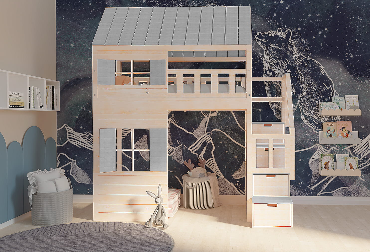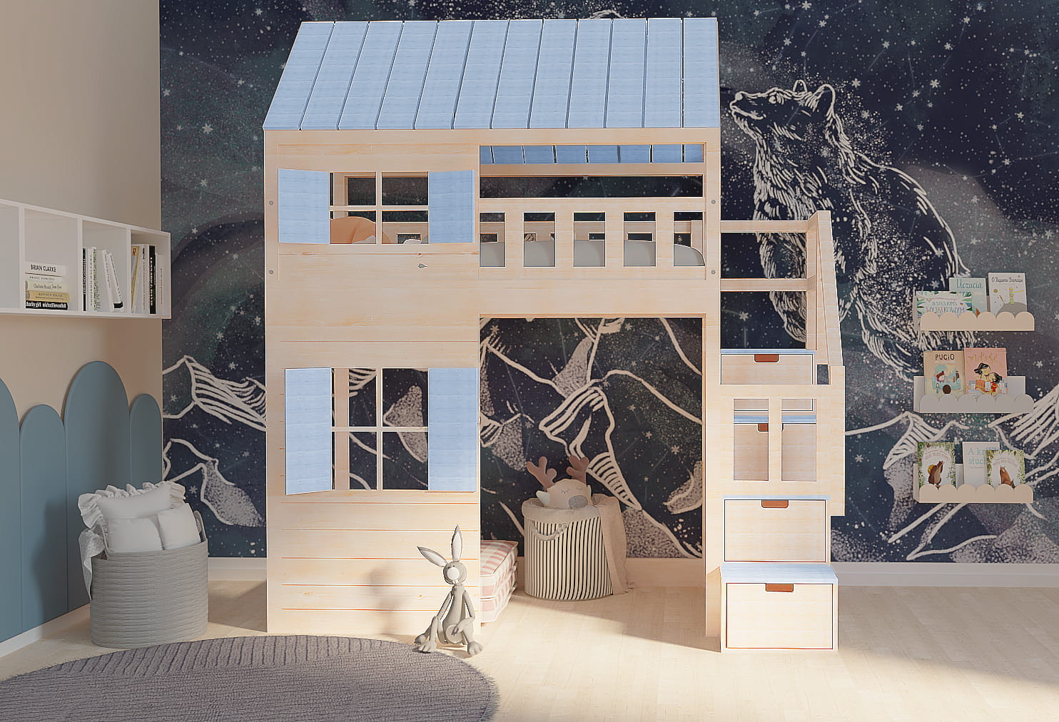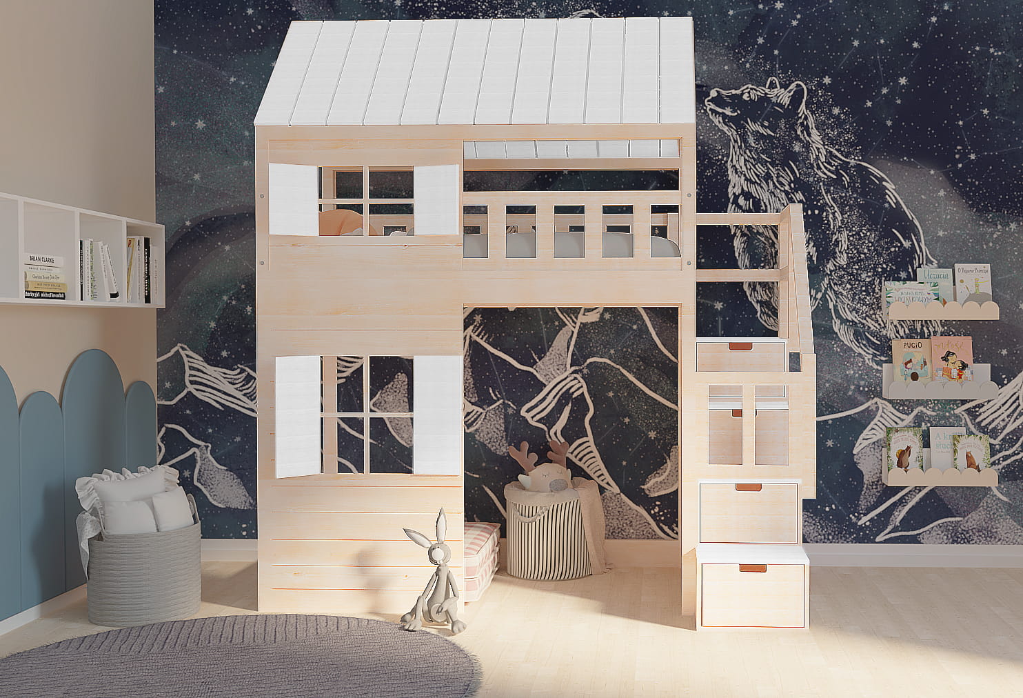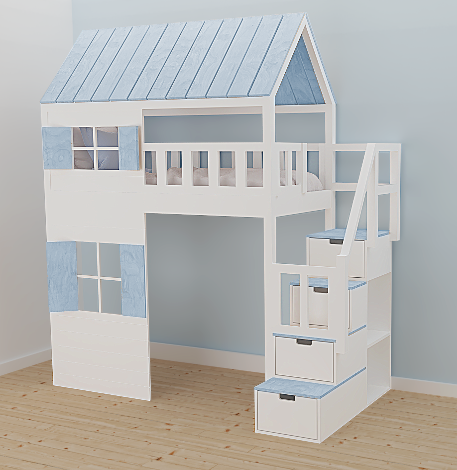 Ten uroczy drewniany mebel, nawiązujący do marynarskich przygód, w zaczarowany sposób zmieni dziecięcy pokój stając się centrum wypoczynku oraz zabaw. Istnieje możliwość dopasowania go do Waszego stylu. Dzieci będą zachwycone.