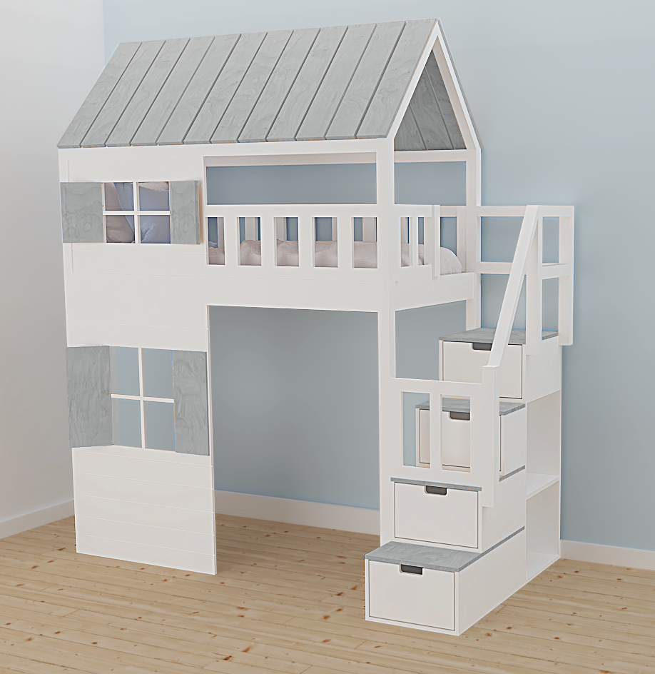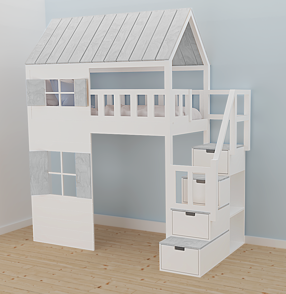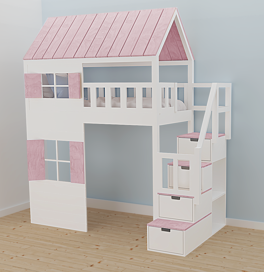 Dziecięce łóżko antresola ze schodami, z drewna sosnowego
