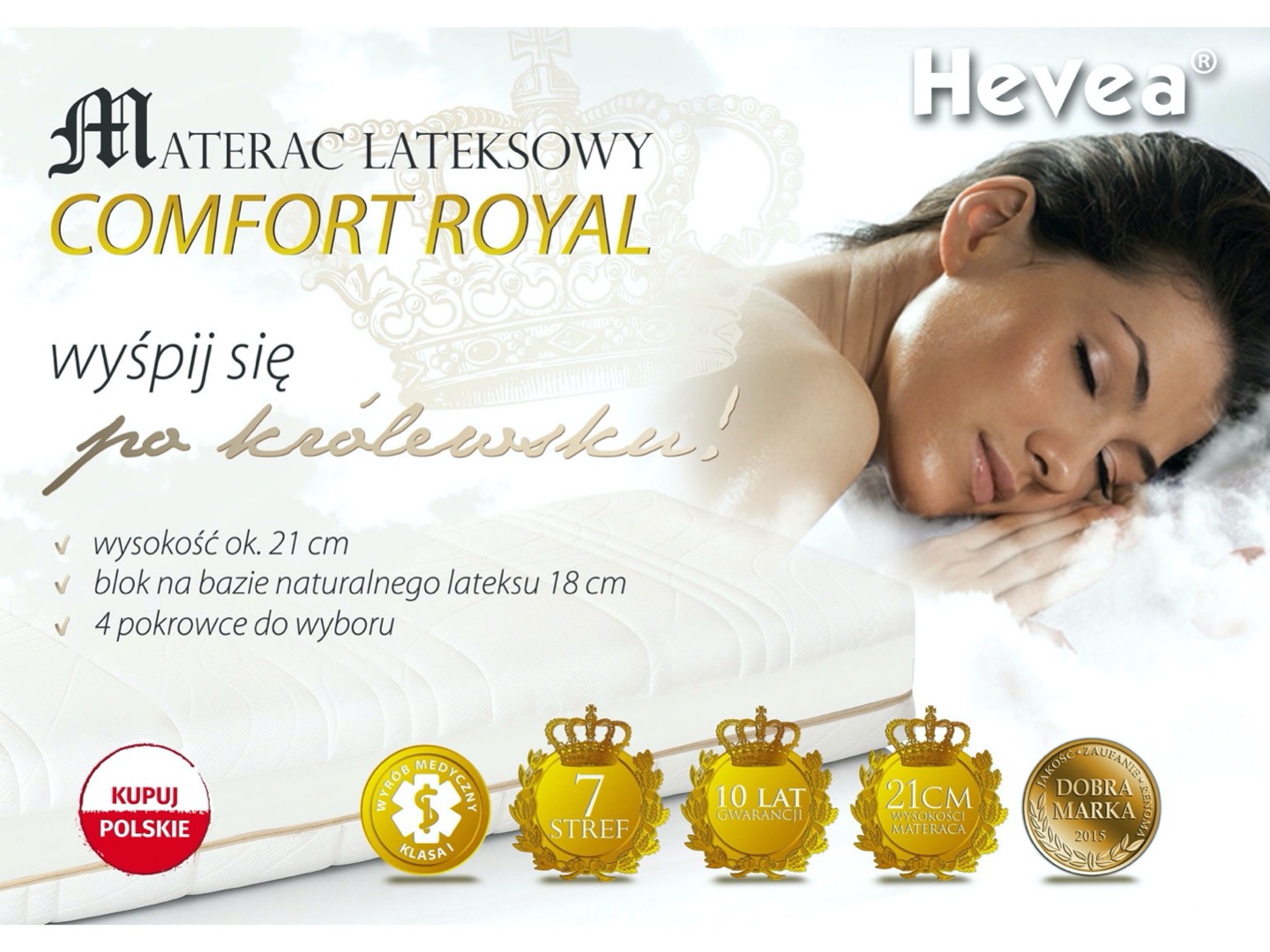 Wygodny materac lateksowy do sypialni, Hevea Comfort Royal będzie doskonałym uzupełnieniem Twojego łóżka. Wypróbuj i ciesz się nim przez długie lata.