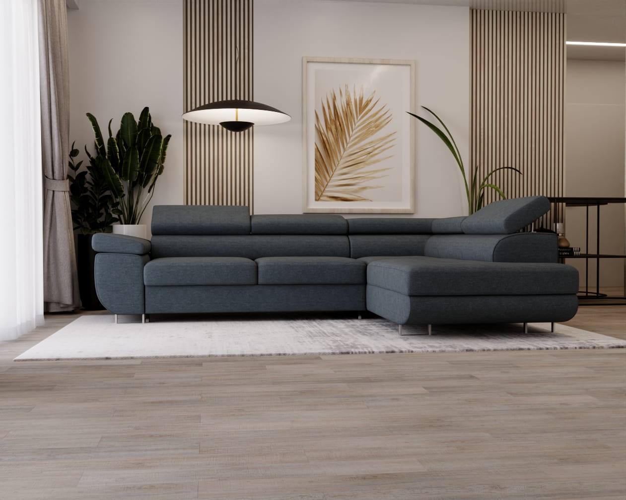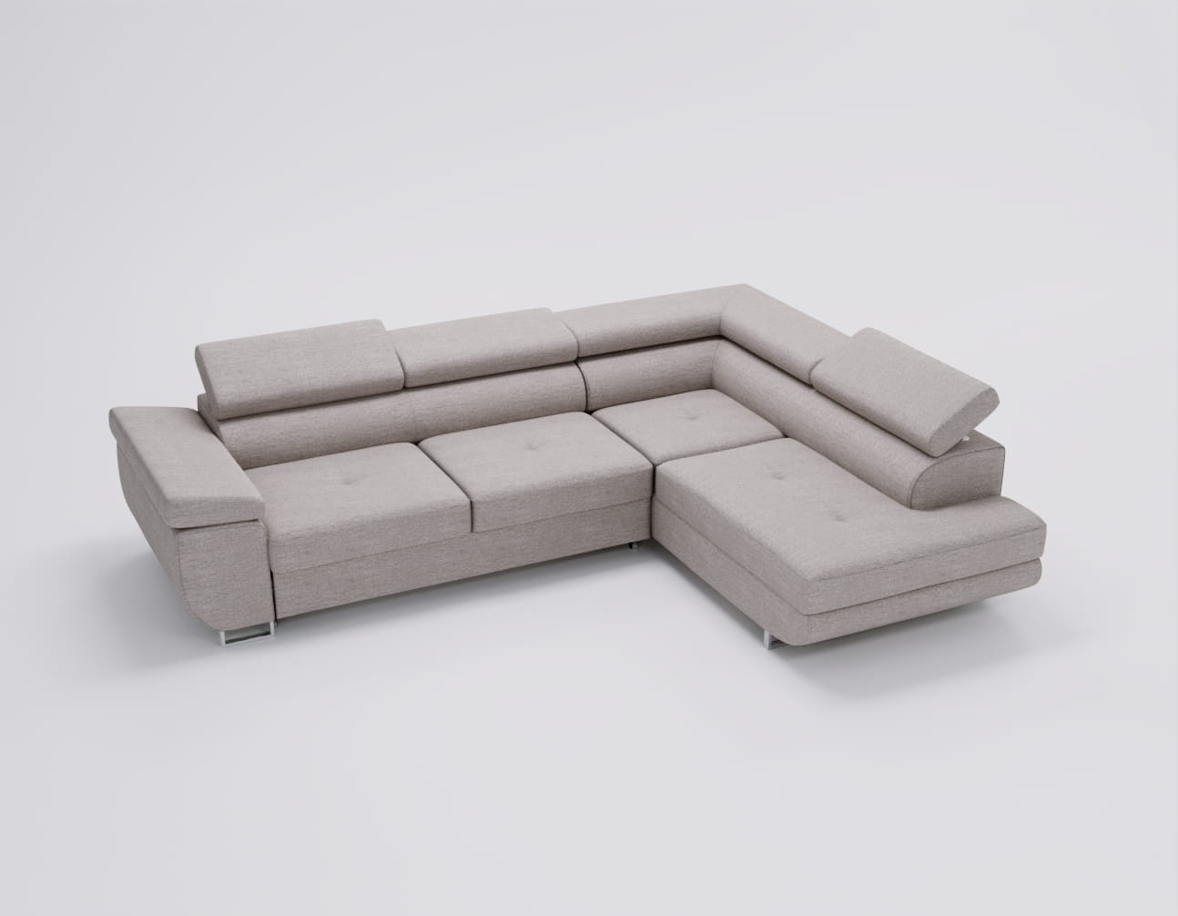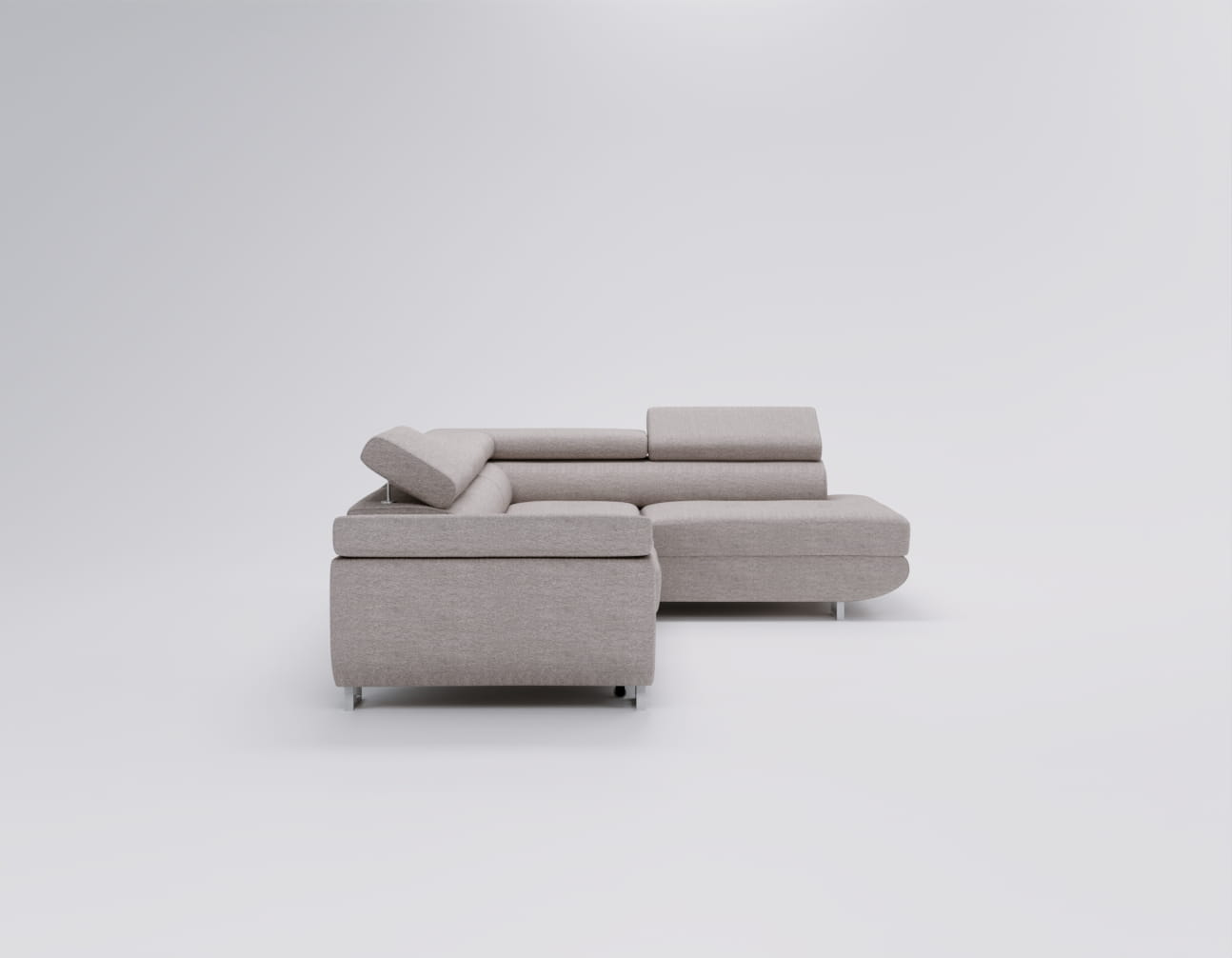 Narożnik Anton jest bardzo wygodny dzięki zastosowanym sprężynom i dużym poduchom zapewniającym wsparcie w każdej pozycji – gdy po prostu odpoczywasz. Trzy regulowane zagłówki pozwolą odpowiednio odpocząć Twojej głowie i szyi.