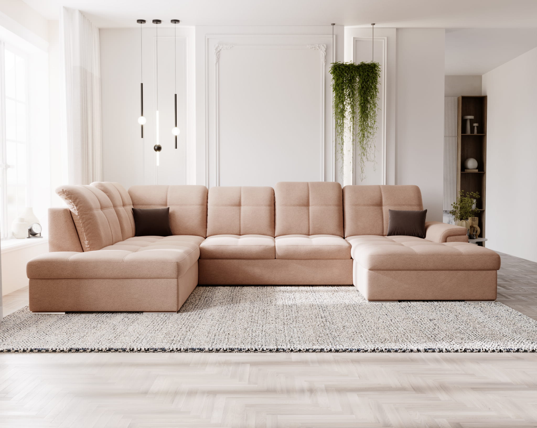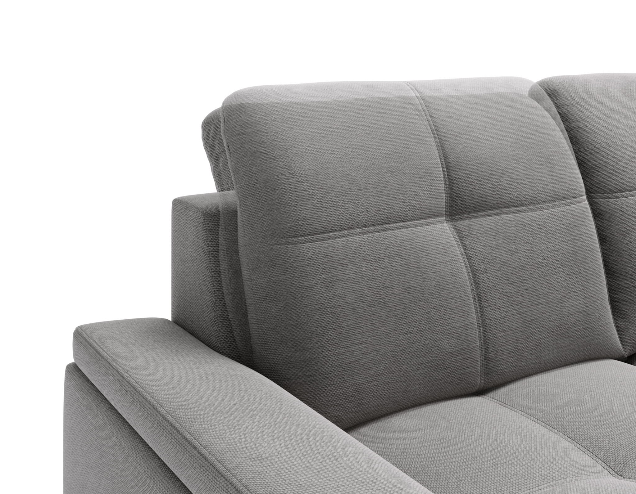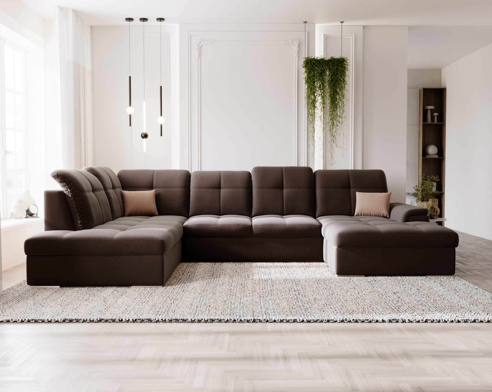 Narożnik Bruno jest bardzo wygodny dzięki zastosowanym sprężynom jak również regulowanym oparciom i zagłówkom zapewniającym wsparcie w każdej pozycji – gdy po prostu odpoczywasz.