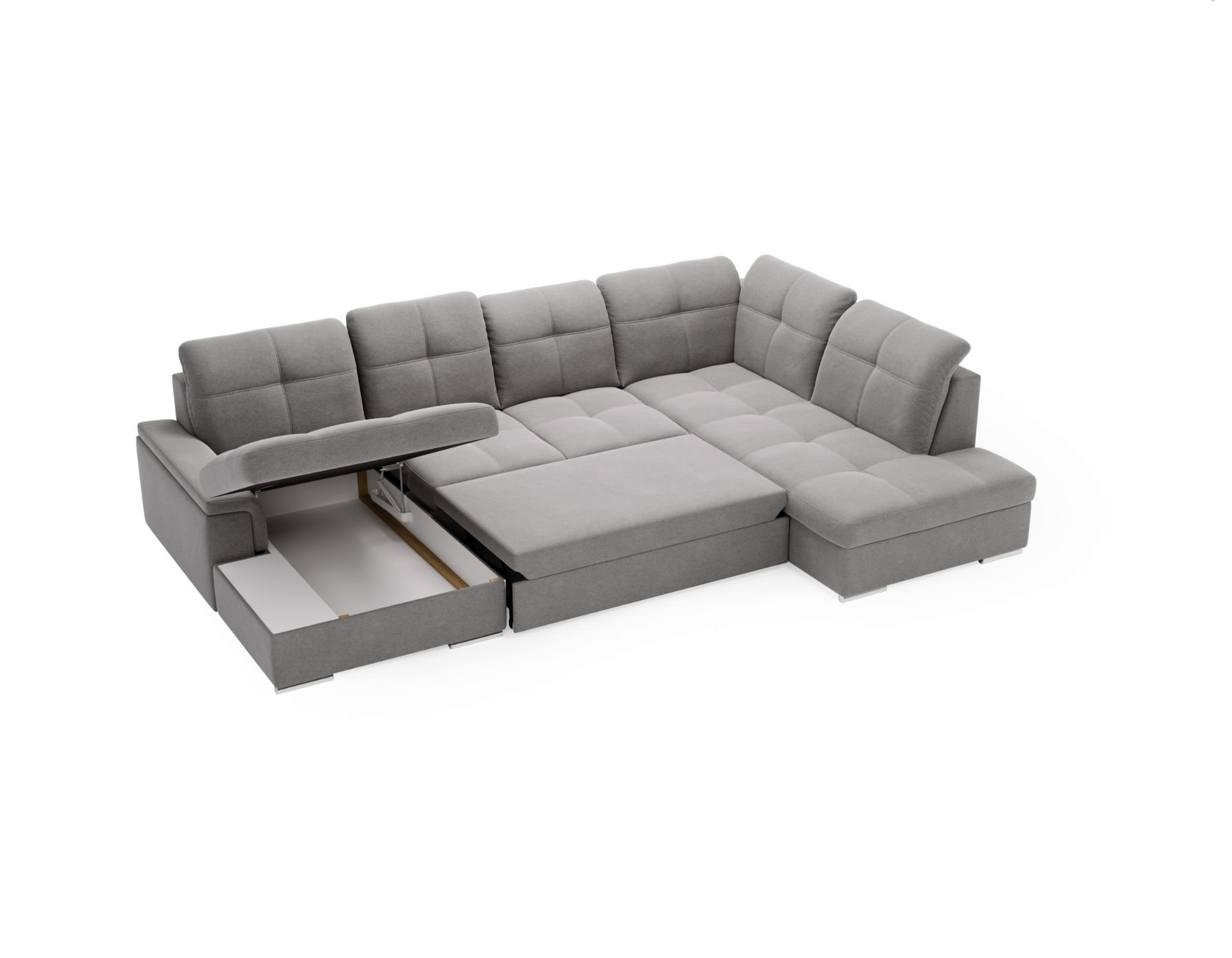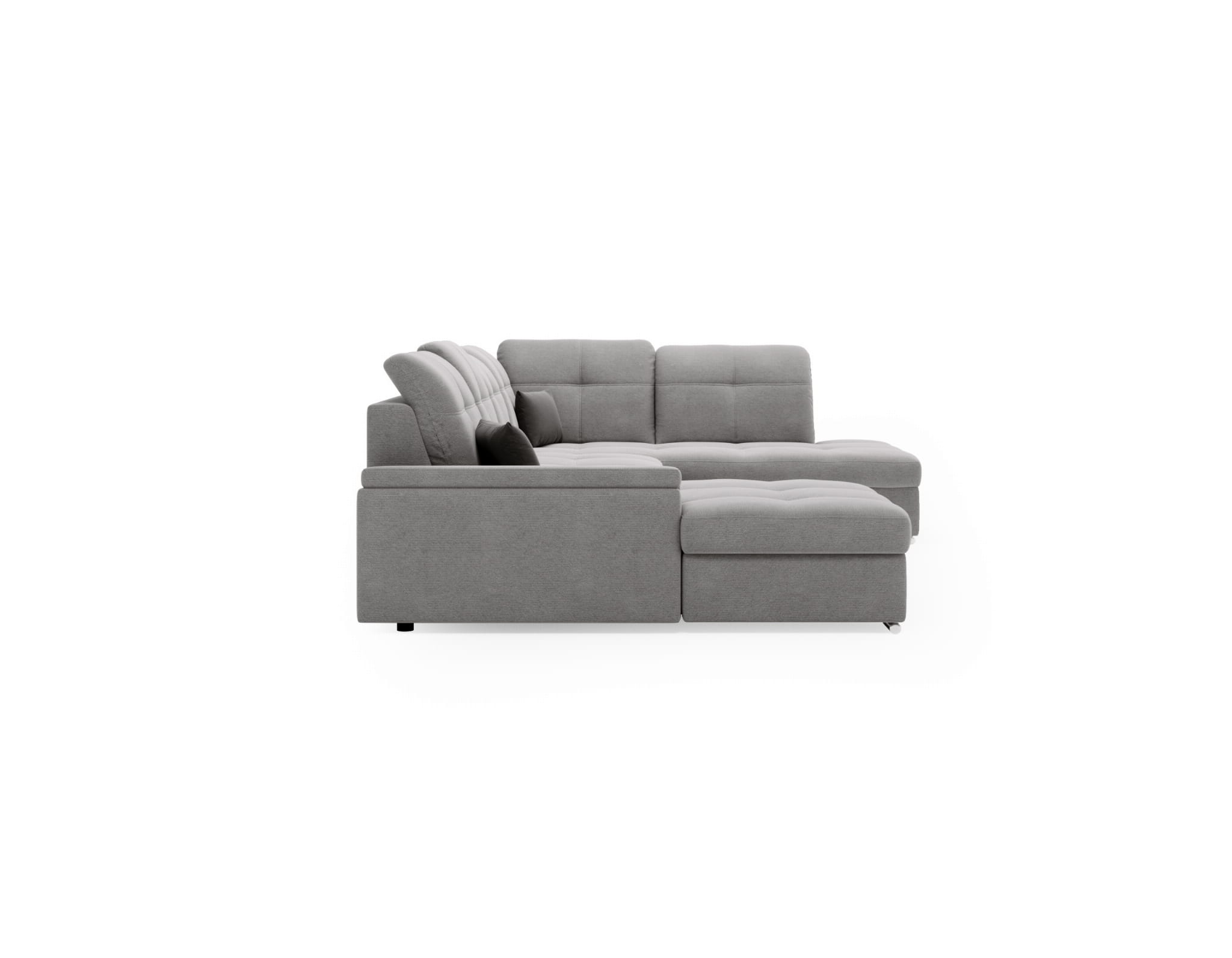 Narożnik Bruno z funkcją spania, dzięki łatwemu rozkładaniu, w mgnieniu oka zmienia się w wygodne łóżko. Wystarczy chwila, by przygotować go na nocny wypoczynek. To idealne rozwiązanie w przypadku niespodziewanych gości lub na weekendowe drzemki. Warto podkreślić, że narożnik Bruno nie oszczędza na komforcie, zapewniając niezwykle przyjemne siedzenie i sen. Zarówno krótka popołudniowa drzemka, jak i pełny nocny relaks, będą absolutnie wyjątkowe. Dodatkowy tut tego mebla to pojemnik do przechowywania pościeli czy też innych drobiazgów.