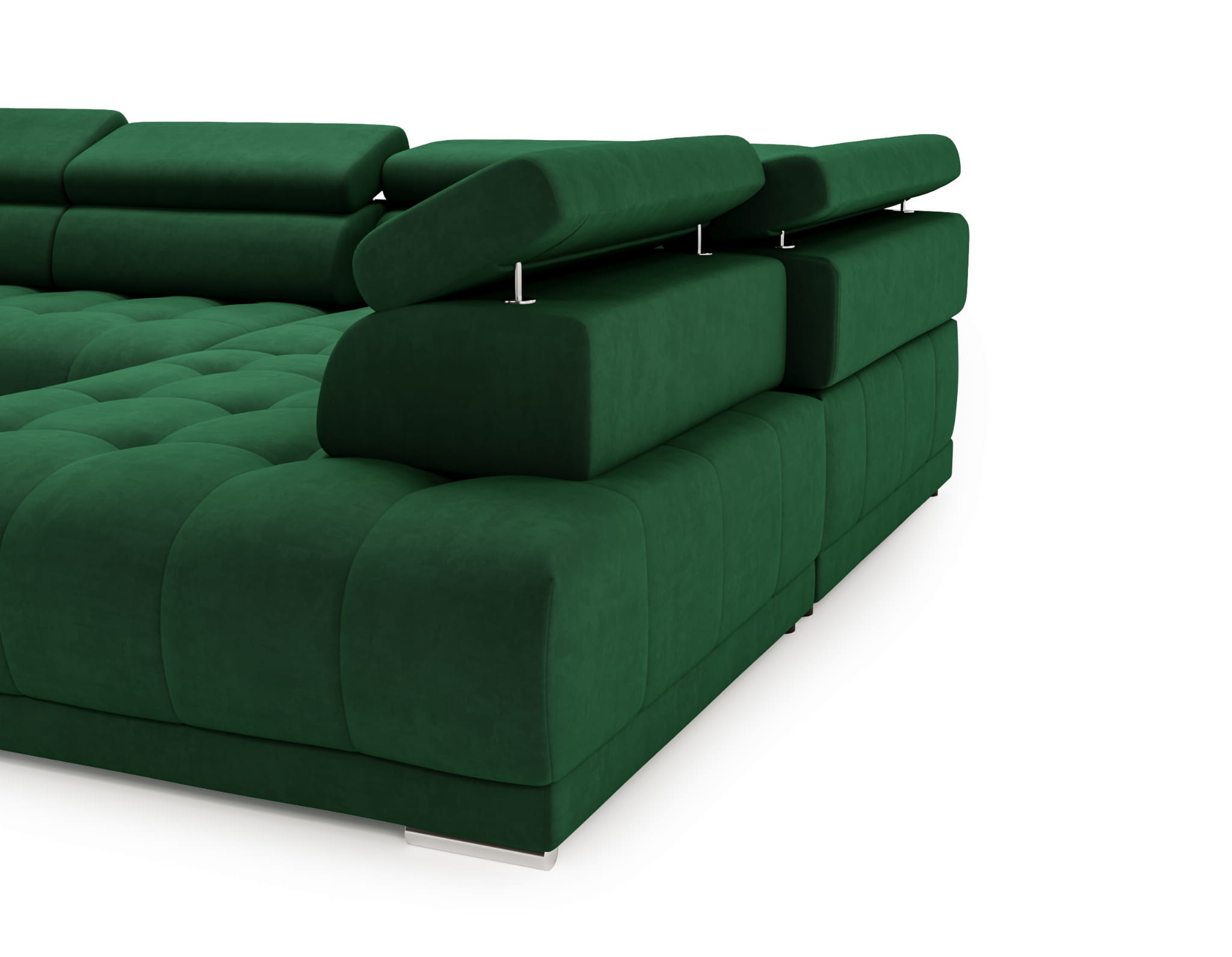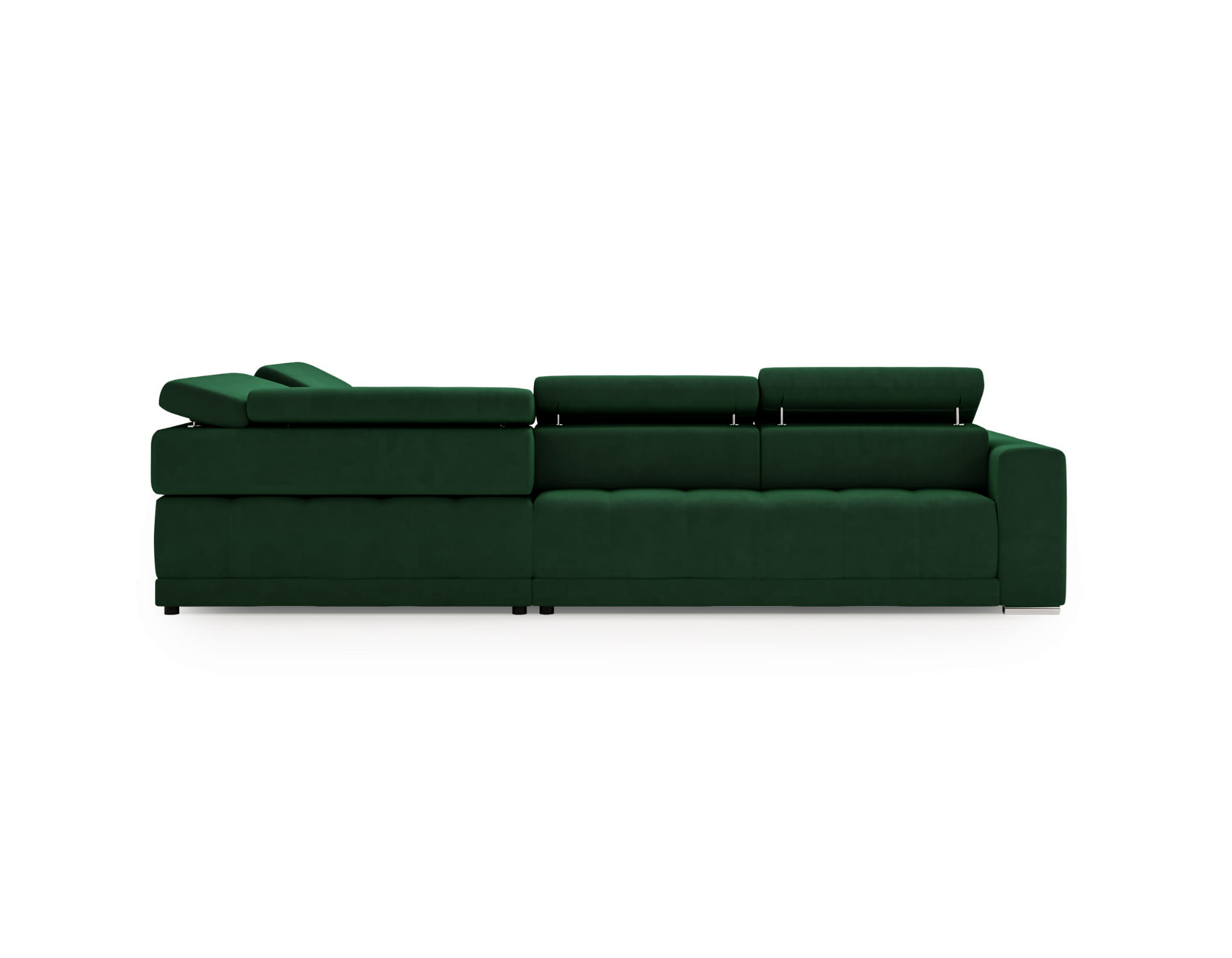 Narożnik Mojito jest bardzo wygodny dzięki zastosowanym sprężynom i regulowanym oparciom zapewniającym wsparcie w każdej pozycji – gdy po prostu odpoczywasz. Pięć regulowanych zagłówków pozwoli odpowiednio odpocząć Twojej głowie i szyi.