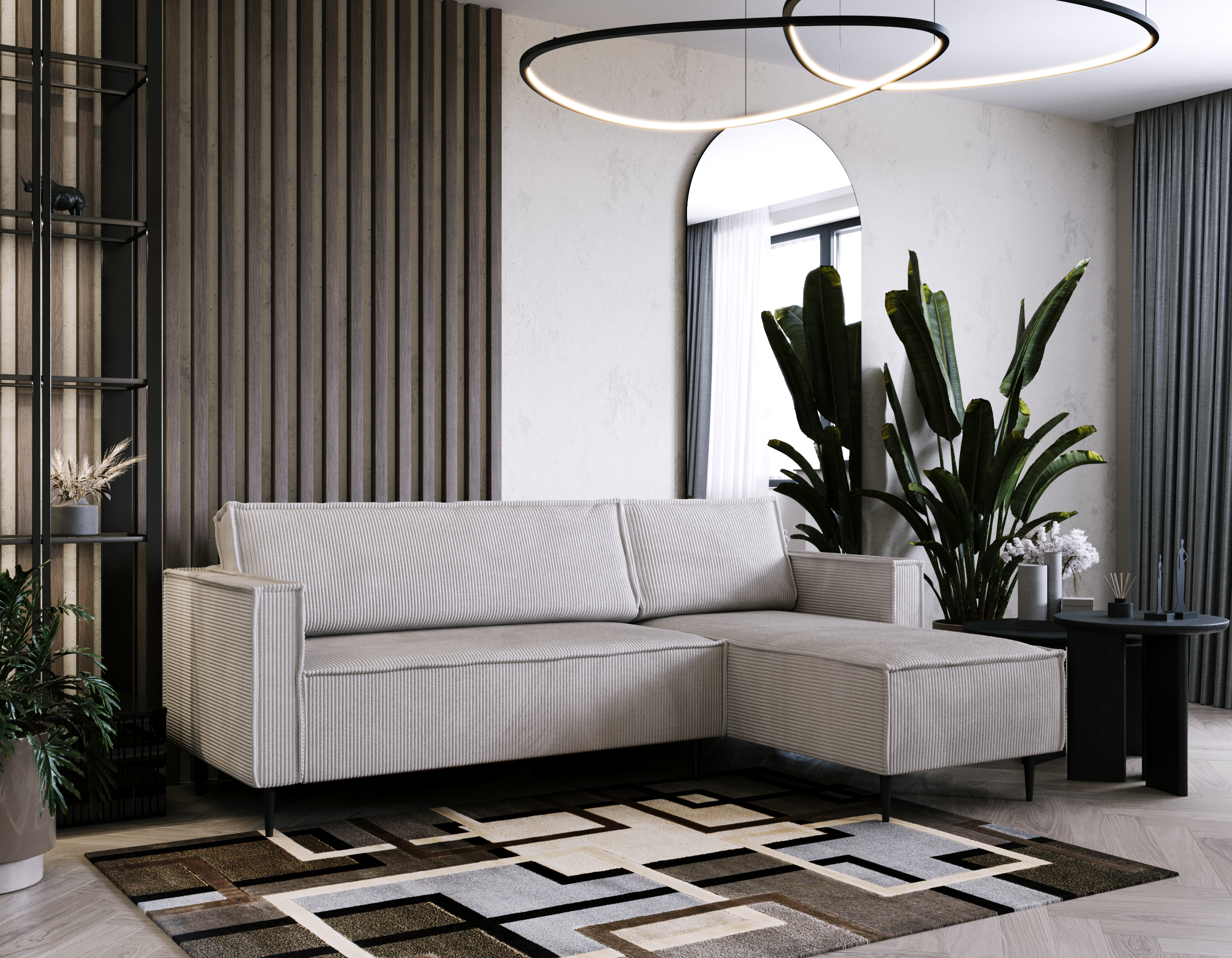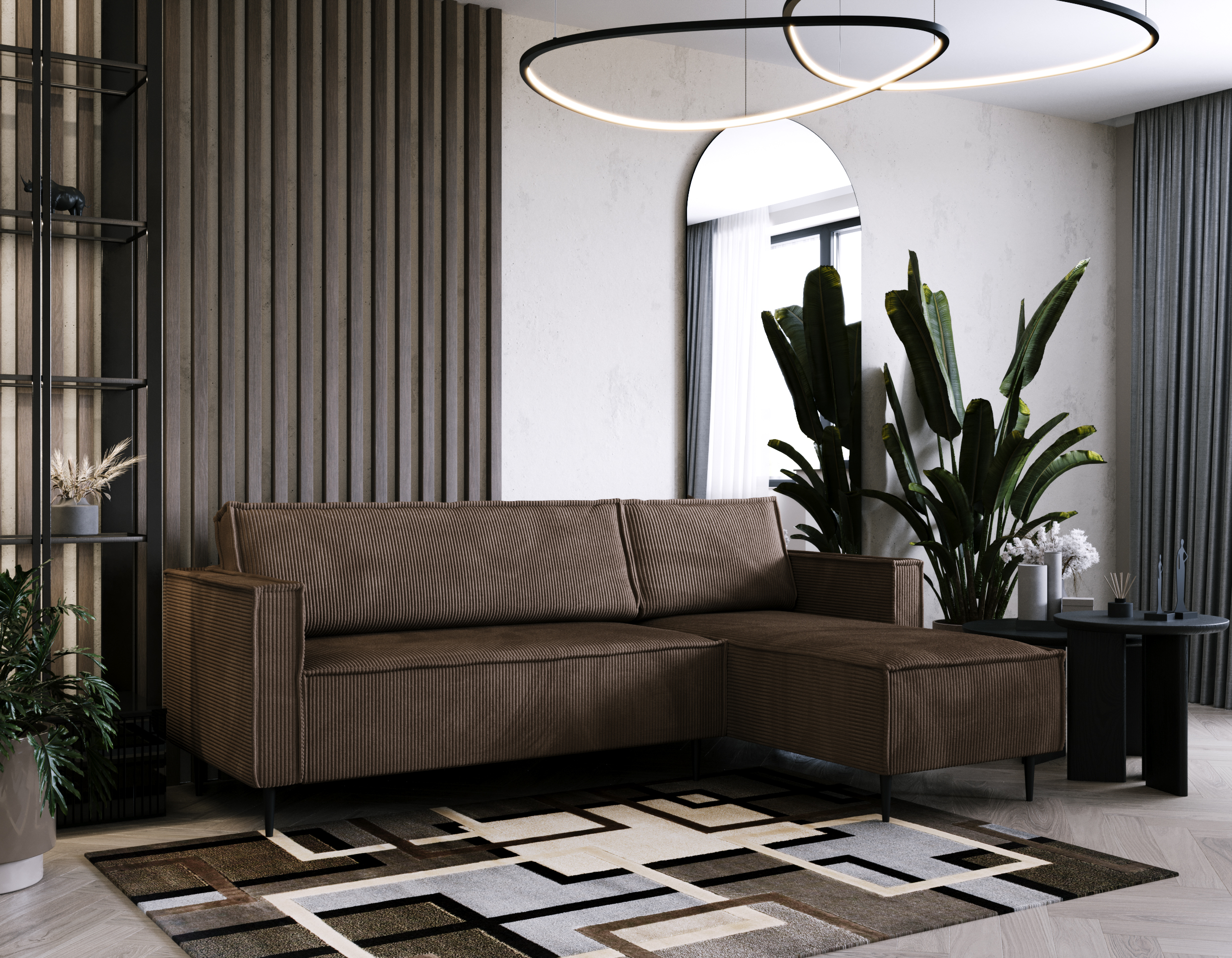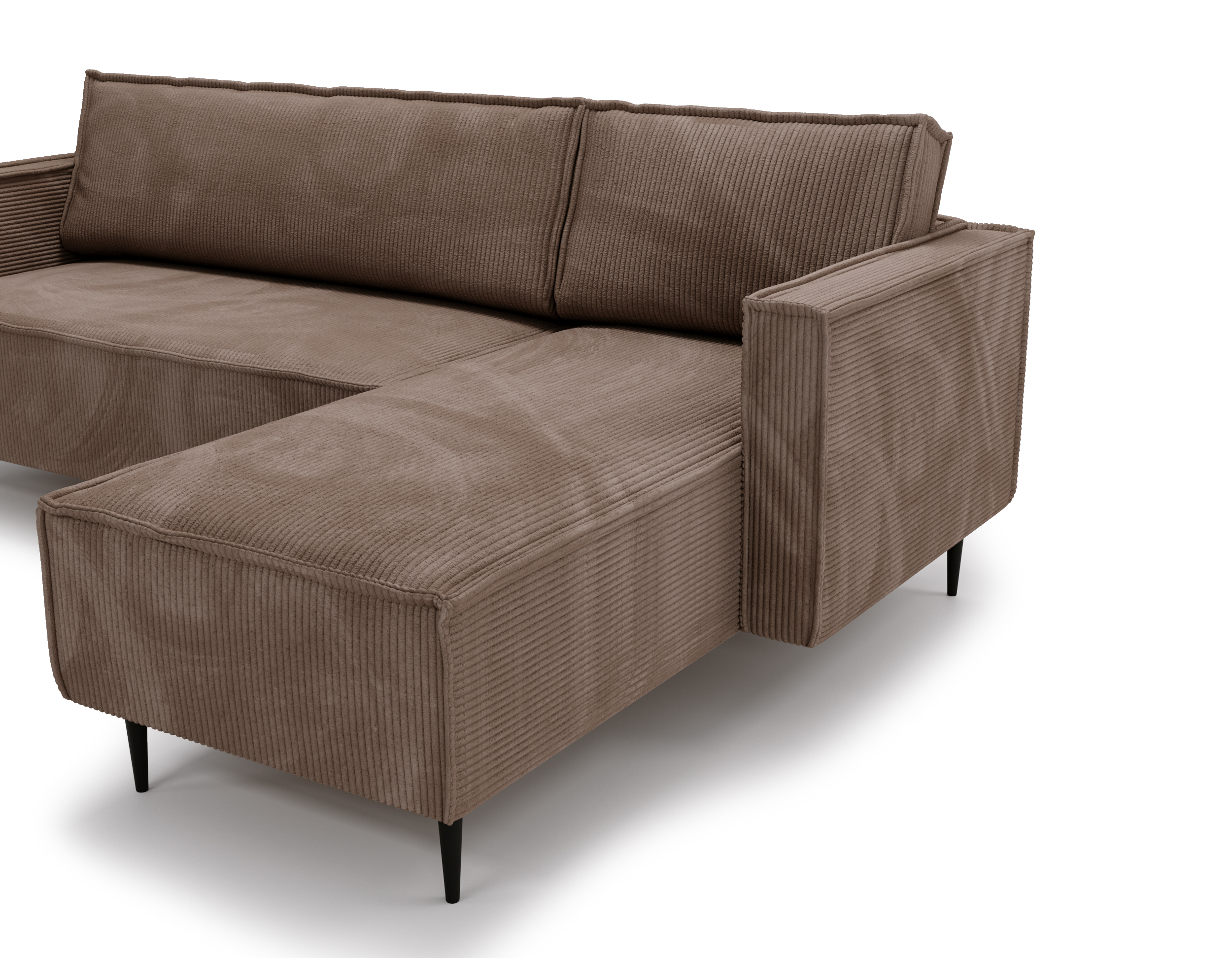 To nie tylko mebel, to prawdziwe centrum wypoczynku i relaksu w Twoim salonie. Stałe podłokietniki dodają elegancji i funkcjonalności, tapicerowany tył pozwala na dowolność aranżacji, a wyjątkowy design wyróżnia narożnik w każdym wnętrzu.