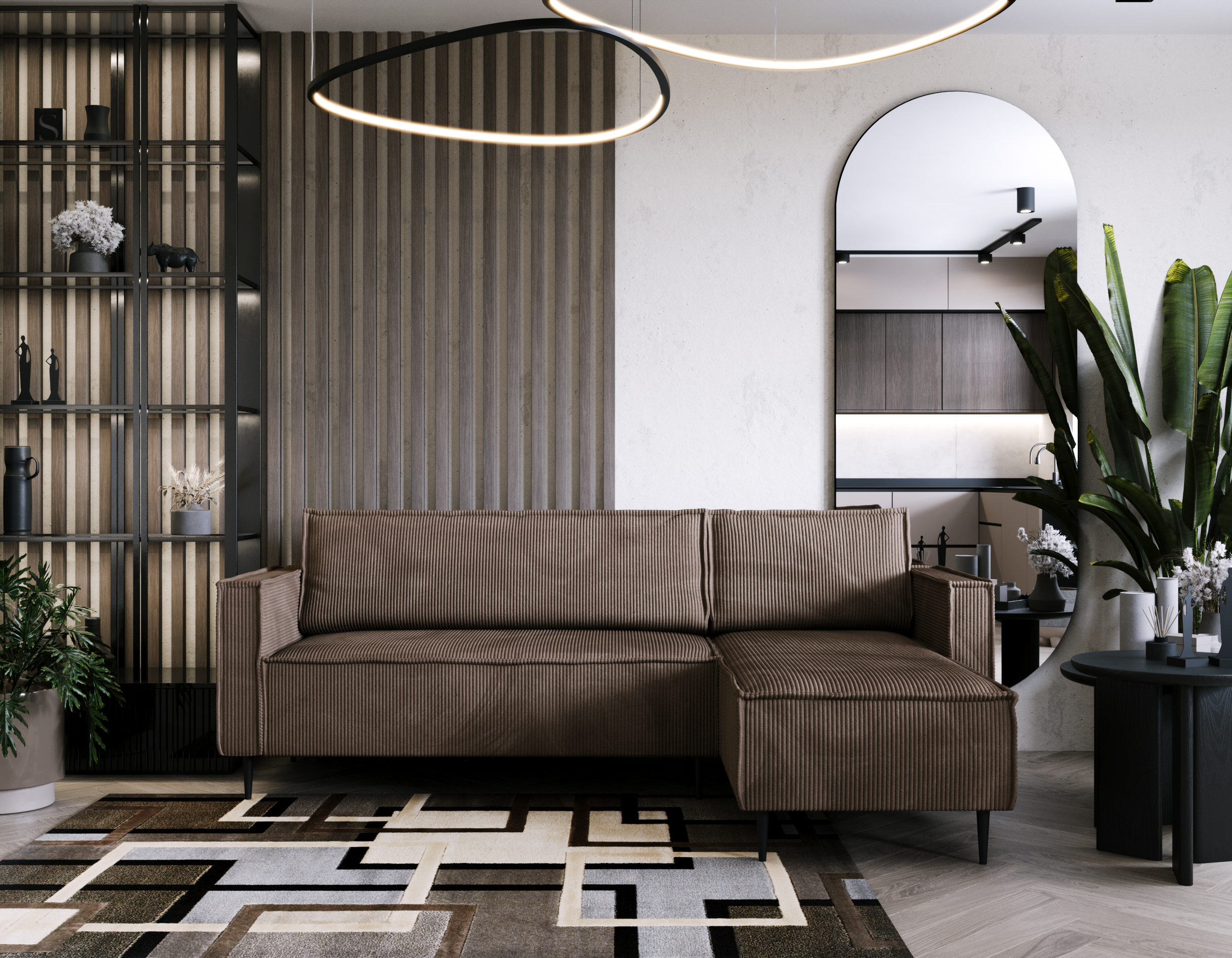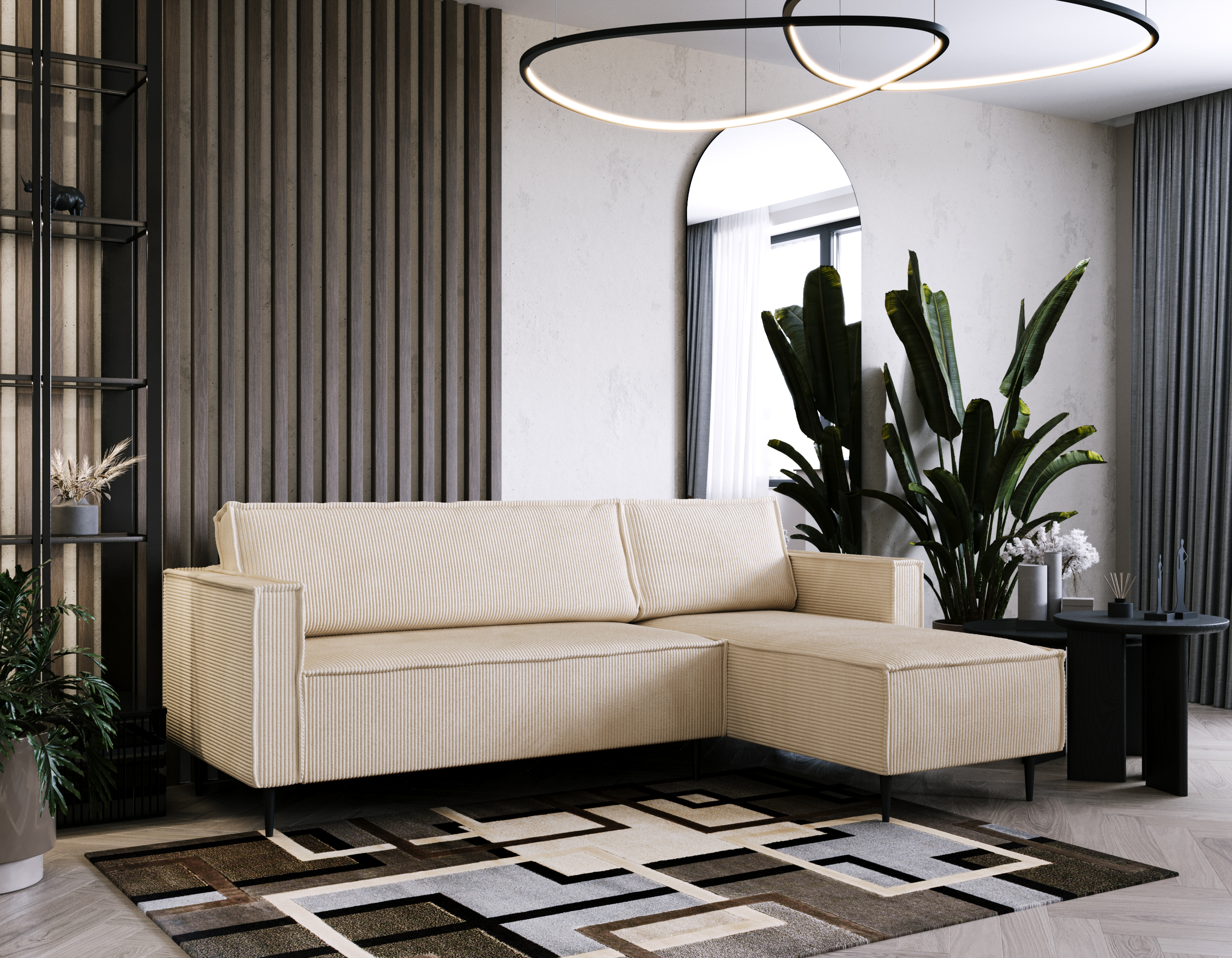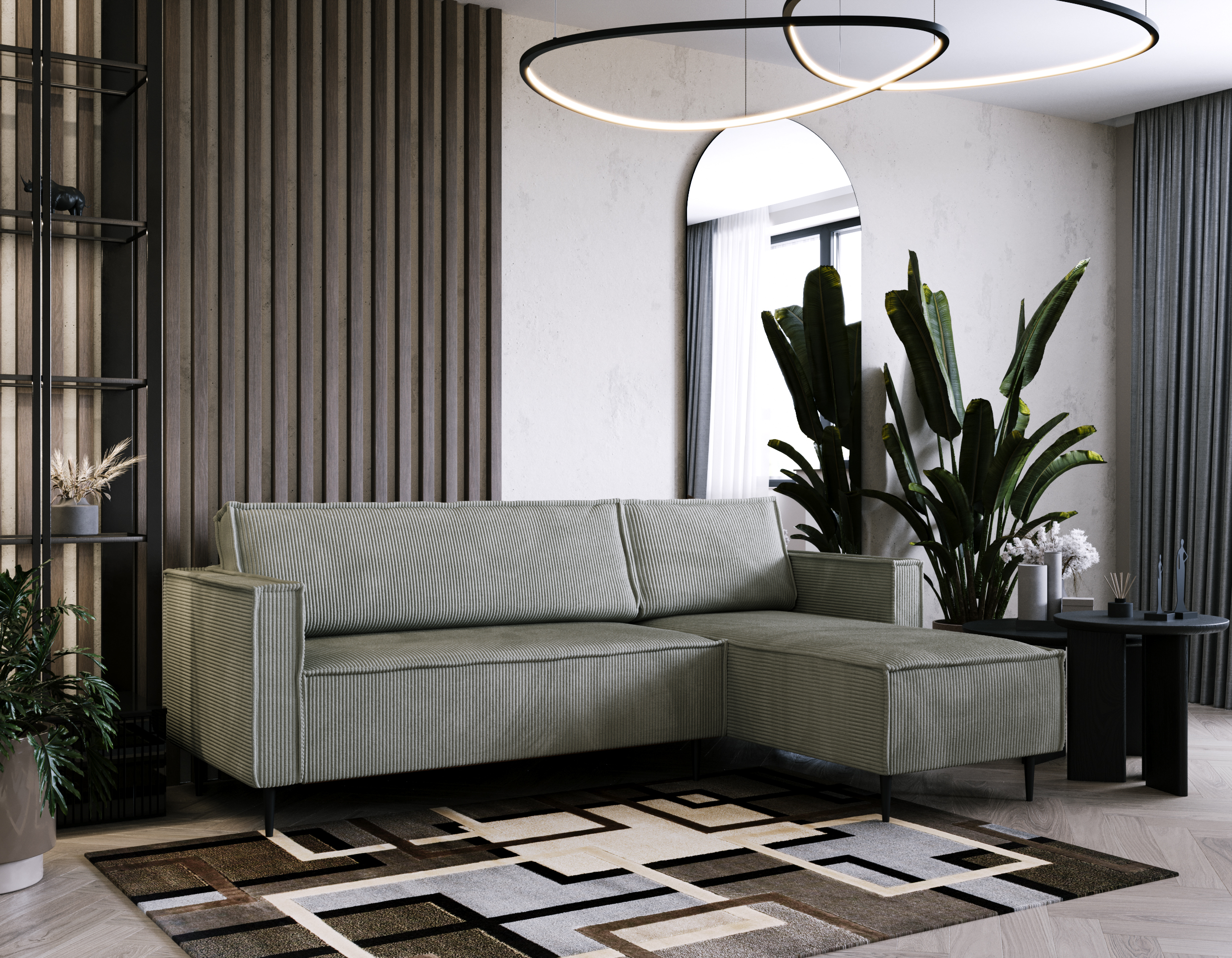 To nie tylko mebel, to prawdziwe centrum wypoczynku i relaksu w Twoim salonie. Stałe podłokietniki dodają elegancji i funkcjonalności, tapicerowany tył pozwala na dowolność aranżacji, a wyjątkowy design wyróżnia narożnik w każdym wnętrzu.