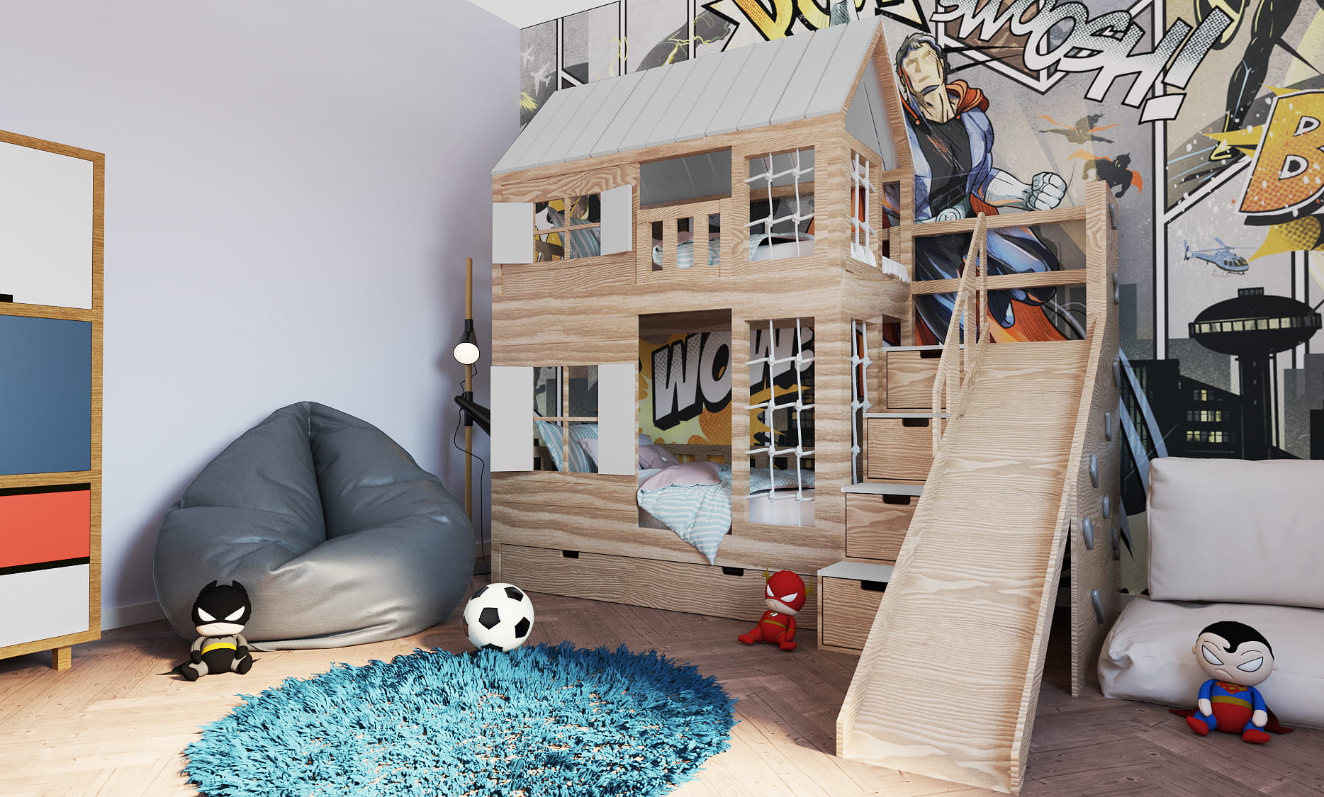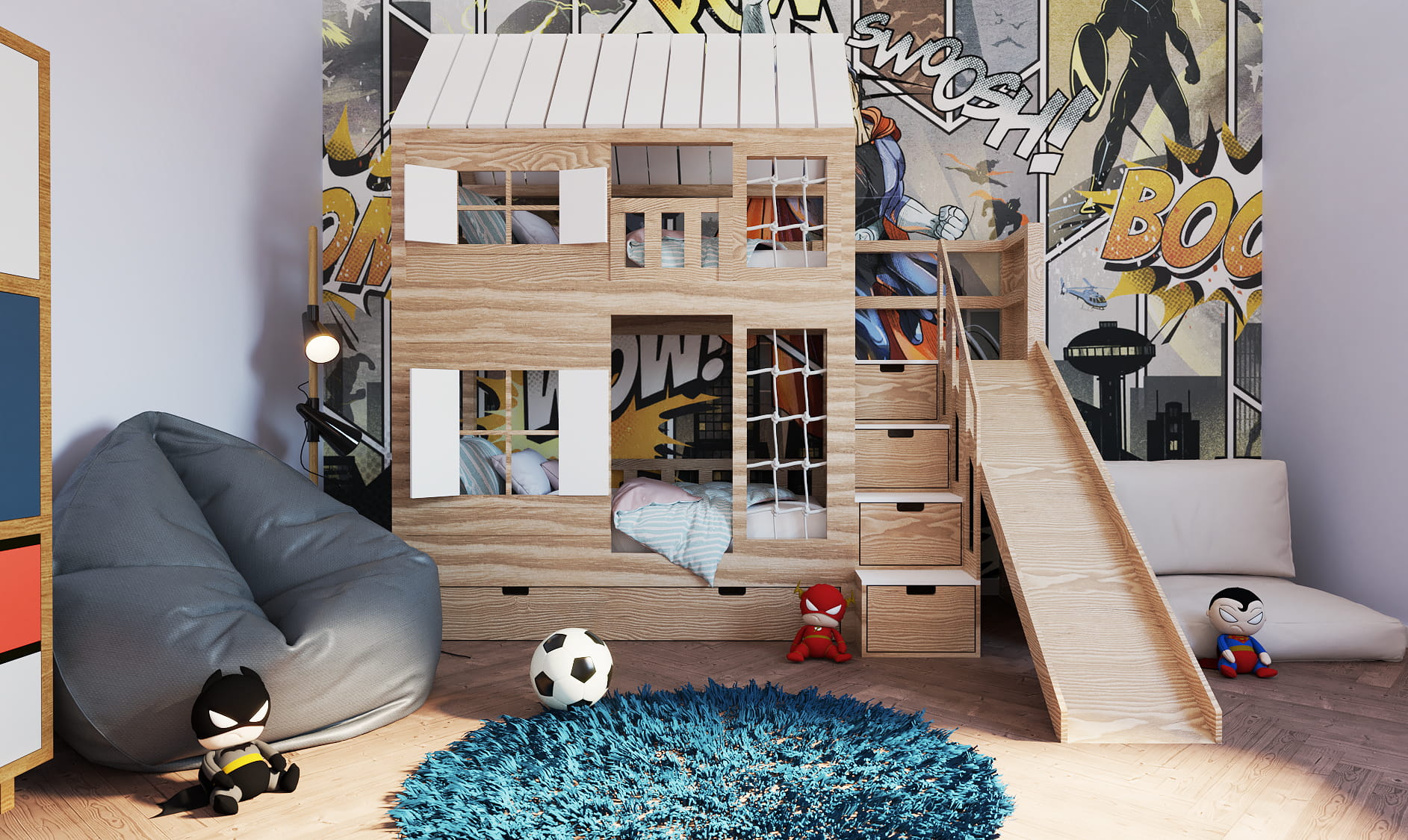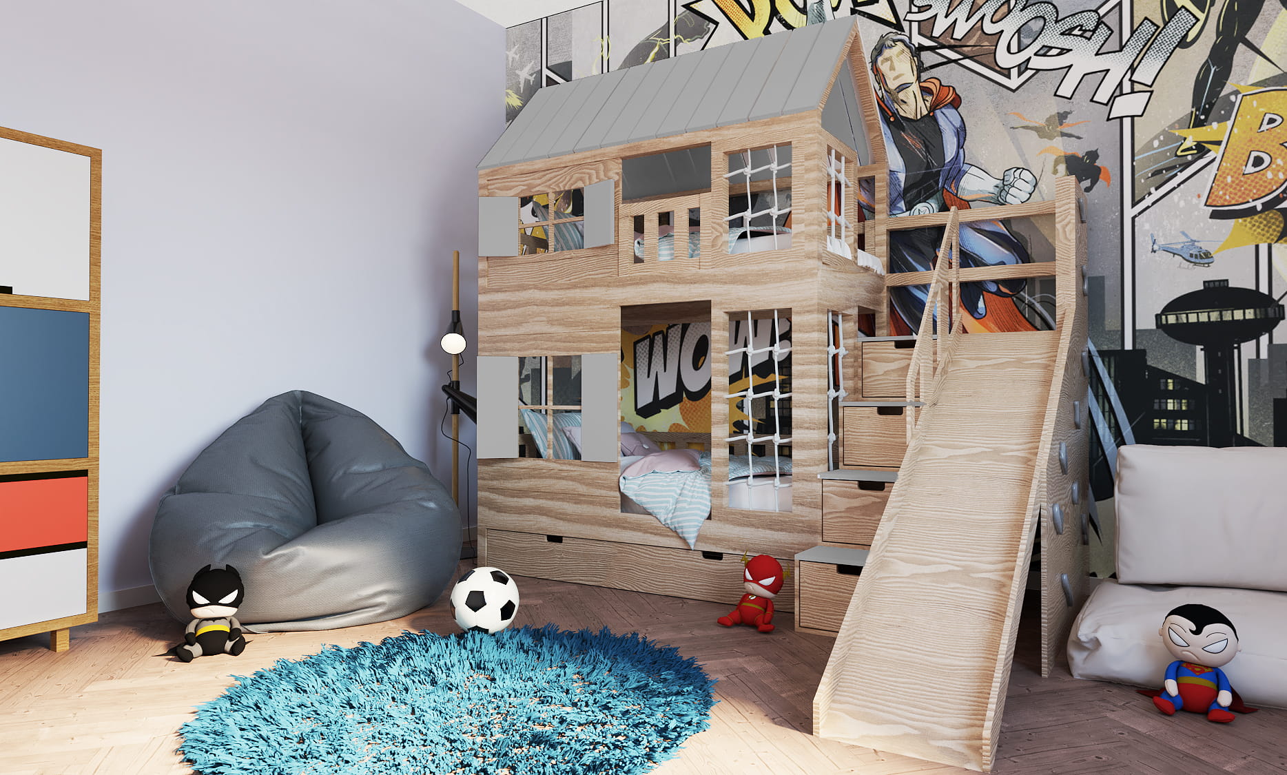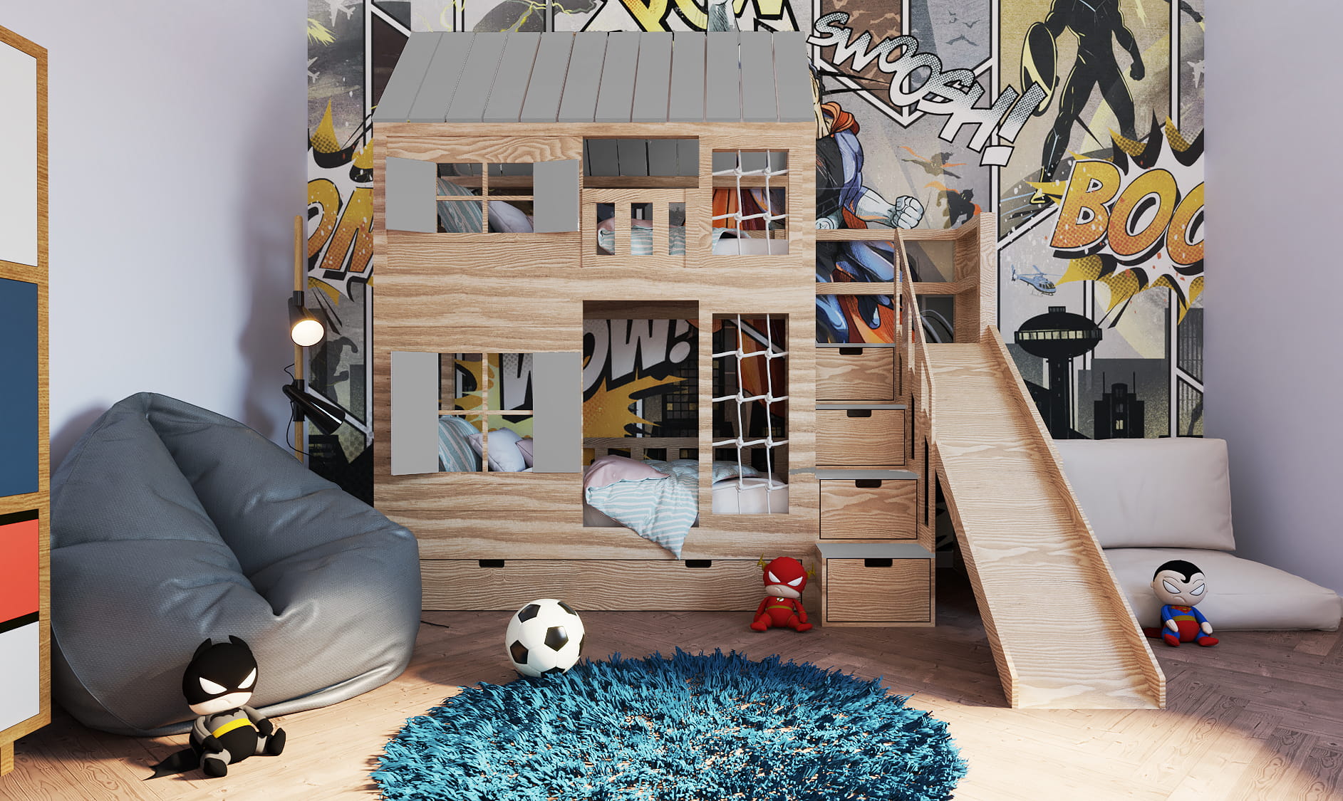 Ten uroczy mebel z drewna w zaczarowany sposób zmieni dziecięcy pokój stając się centrum wypoczynku oraz zabaw. Jest tu wszystko co potrzebne do zużycia dziecięcej energii! Wybierzcie takie malowanie Placu Zabaw jakie Wam się najbardziej podoba. Dzieci będą zachwycone.
