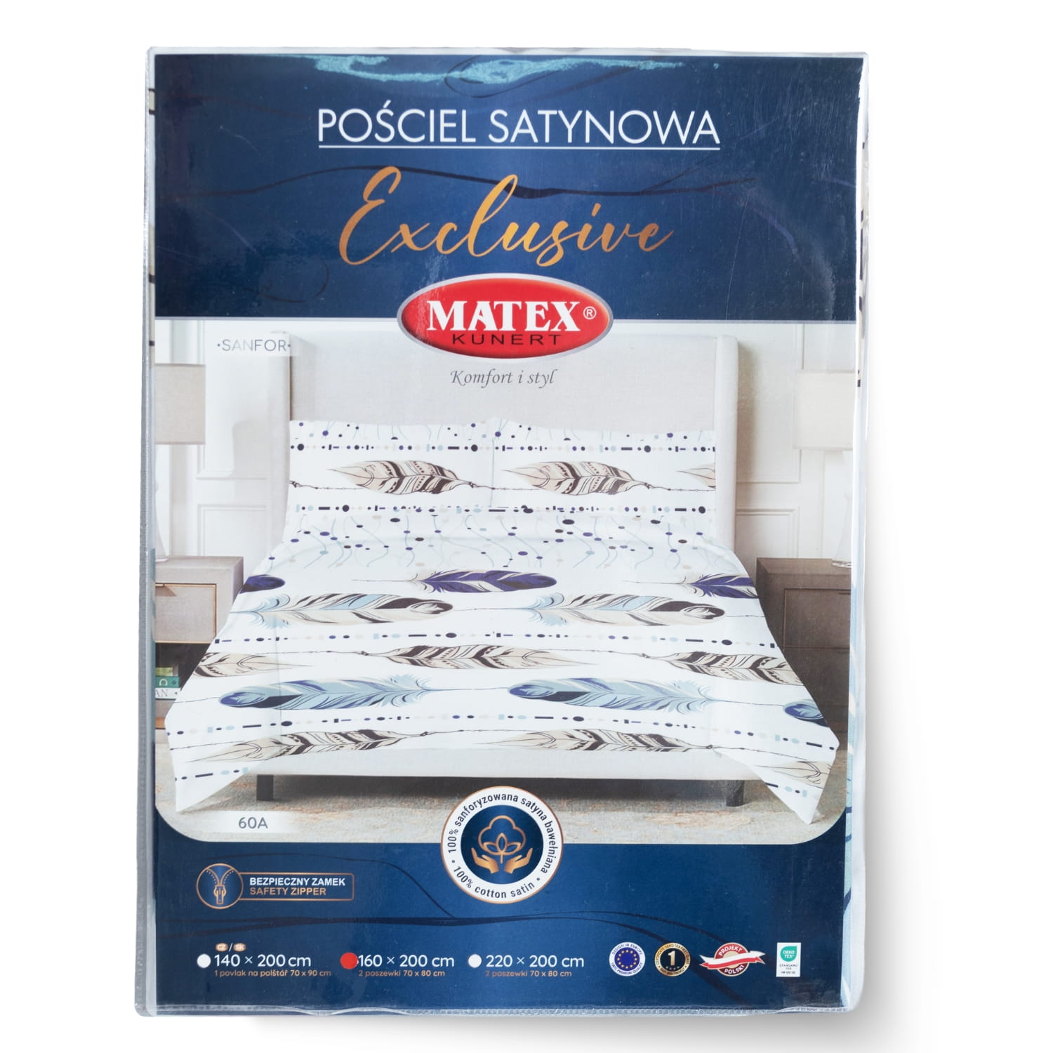 Pościel satynowa EXCLUSIVE (poszwa 220x200 cm – 1 szt., poszewki – 70x80 cm – 2 szt.), wzór 60