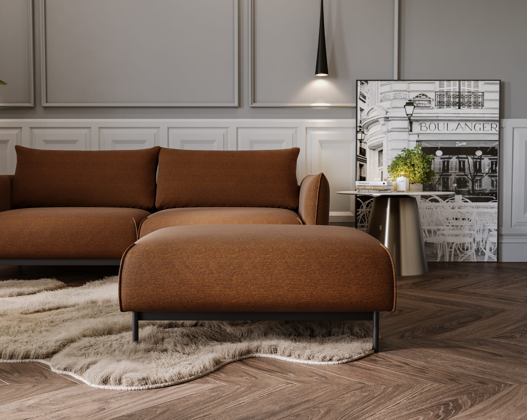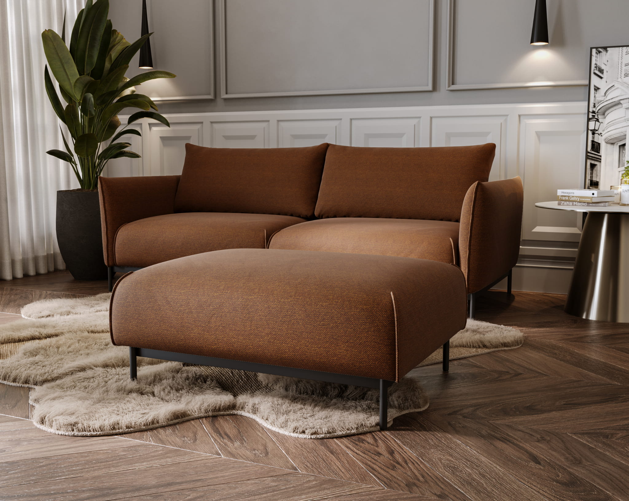 Bueno to połączenie eleganckiego designu z praktyczną konstrukcją. Osadzona na metalowym stelażu pufa zyskuje lekkość i charakterystyczny styl, który przyciąga spojrzenia. Idealnie sprawdzi się jako przedłużenie sofy, funkcjonalny podnóżek lub osobne siedzisko w salonie, sypialni czy przedpokoju.