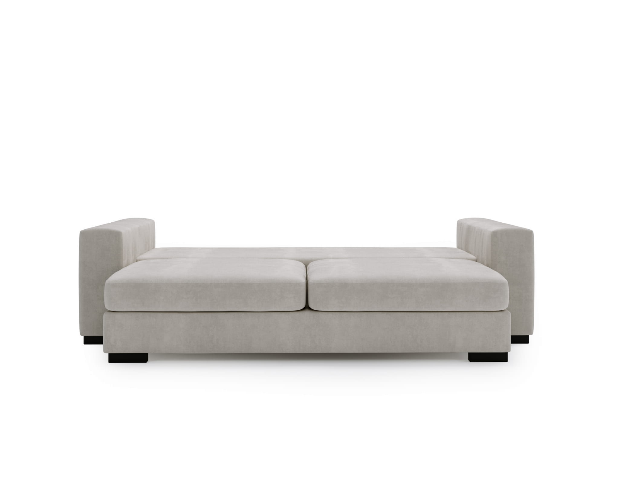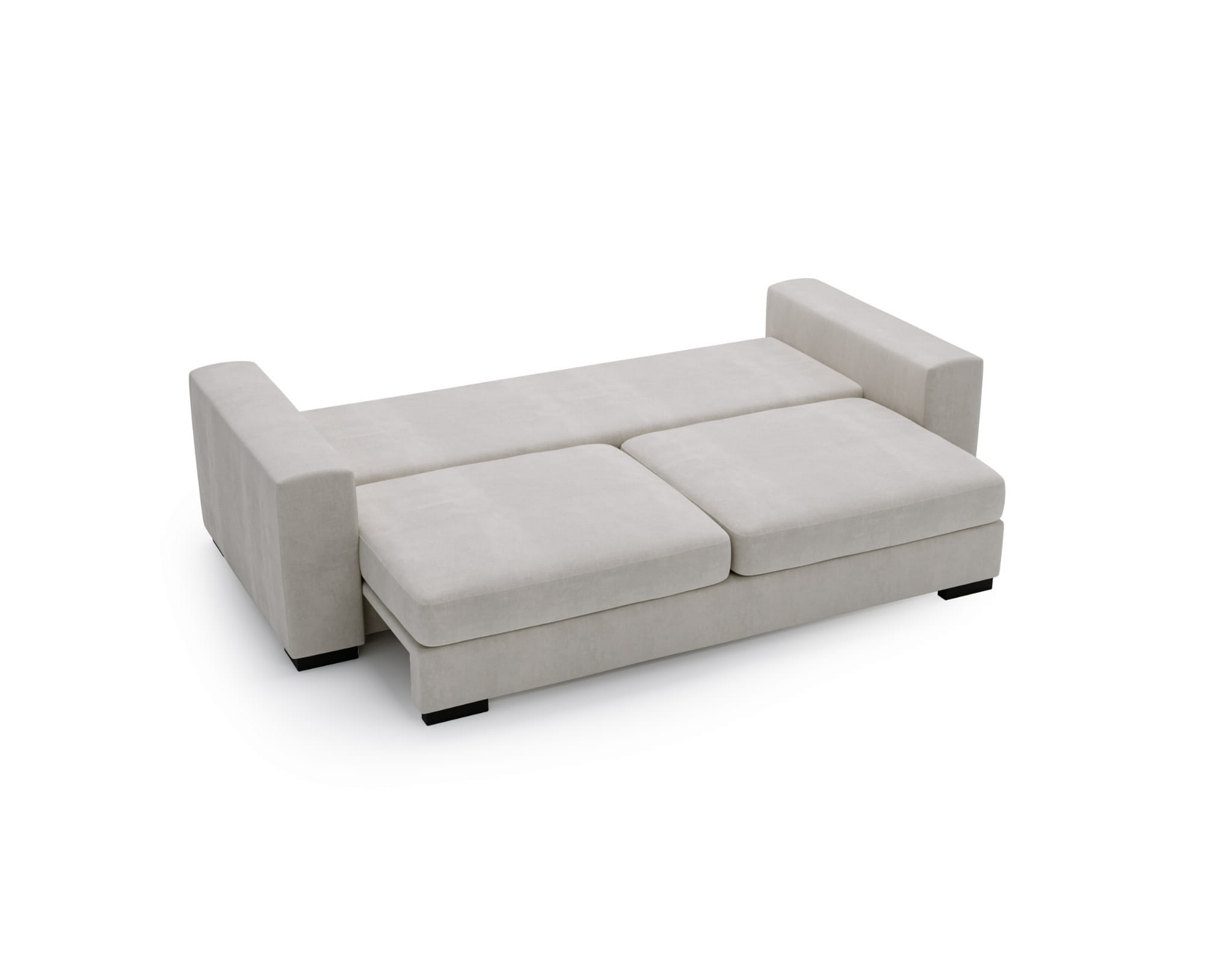 Sofa Amsterdam z funkcją spania, dzięki łatwemu rozkładaniu, w mgnieniu oka zmienia się w wygodne łóżko. Wystarczy chwila, by przygotować ją na nocny wypoczynek. To idealne rozwiązanie w przypadku niespodziewanych gości lub na weekendowe drzemki. Dodatkowym atutem jest dyskretny pojemnik na pościel. Warto podkreślić, że sofa Amsterdam nie oszczędza na komforcie, zapewniając niezwykle przyjemne siedzenie i sen. Zarówno krótka popołudniowa drzemka, jak i pełny nocny relaks, będą absolutnie wyjątkowe.