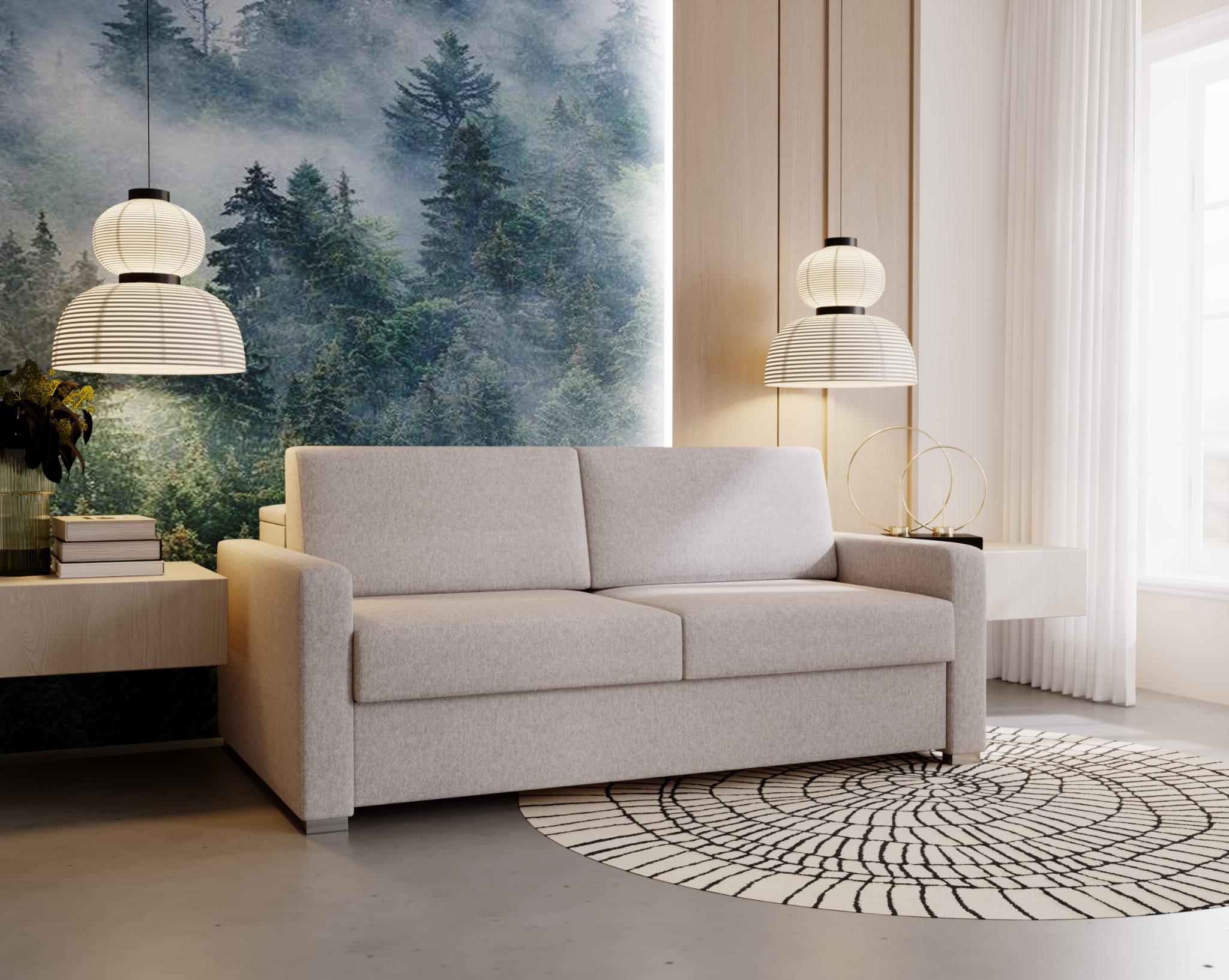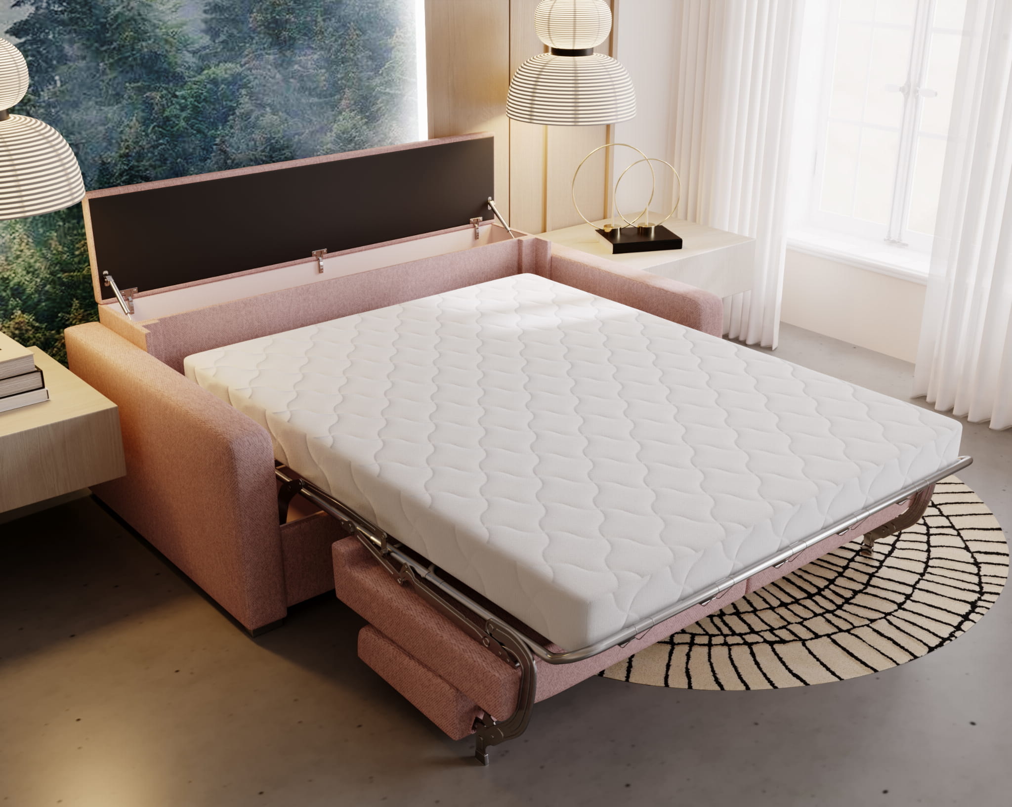 Sofa Soul z pojemnikiem z funkcją spania, dzięki stelażowi włoskiemu rozkłada się w mgnieniu oka zmieniając się w wygodne łóżko. Wystarczy chwila, by przygotować ją na nocny wypoczynek. To idealne rozwiązanie w przypadku niespodziewanych gości lub na weekendowe drzemki. Warto podkreślić, że sofa Soul z pojemnikiem nie oszczędza na komforcie, zapewniając niezwykle przyjemne siedzenie i sen. Zarówno krótka popołudniowa drzemka, jak i pełny nocny relaks, będą absolutnie wyjątkowe.