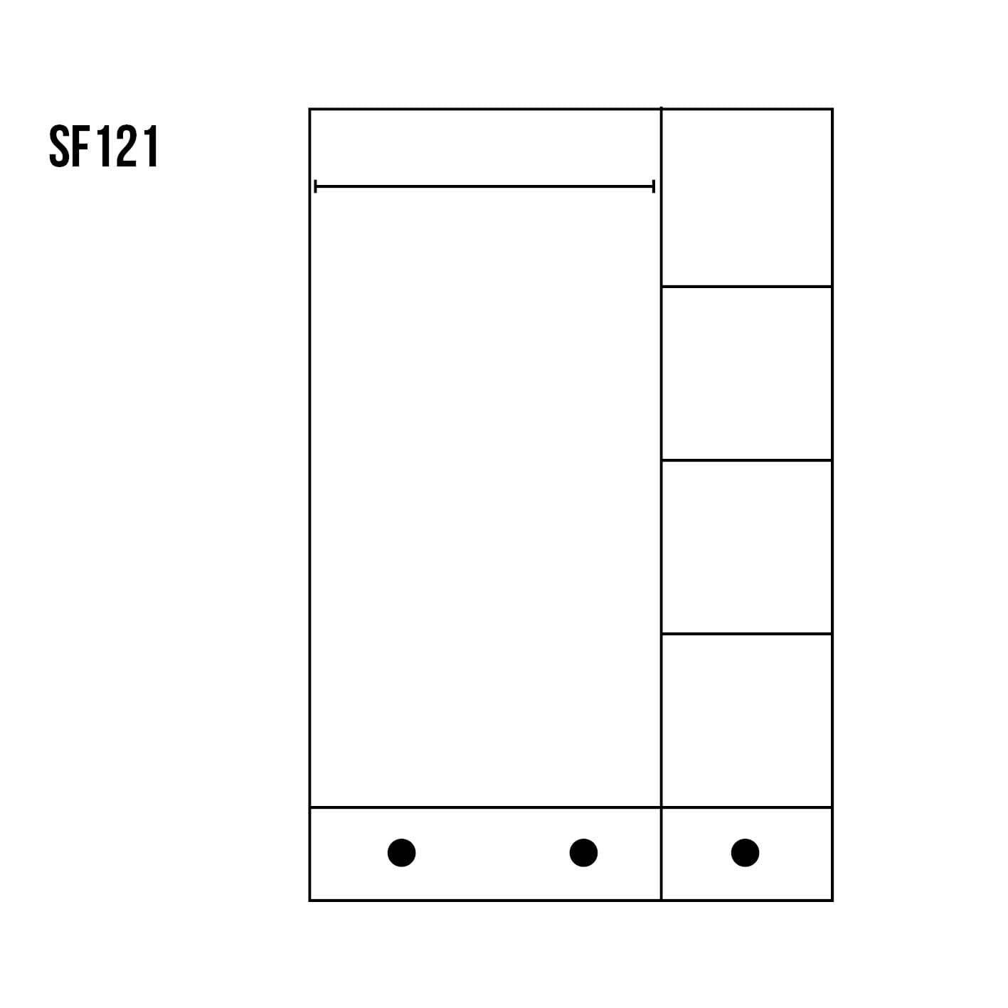 Pojemna trzydrzwiowa szafa SF121 to mebel na miarę całej Twojej garderoby. Jej prosta, pozbawiona zbędnych detali forma i nowoczesny charakter pozwoli stworzyć wnętrze sypialni lub garderoby o wyjątkowym charakterze. Praktycznie zorganizowane wnętrze szafy zapewnia dużo miejsca do przechowywania. W szerszej części znajduje się drążek na ubrania, natomiast w węższej – głębokie półki. Dwie pojemne szuflady umiejscowione w dolnej części szafy sprawdzą się do przechowywania rzadziej używanych rzeczy.