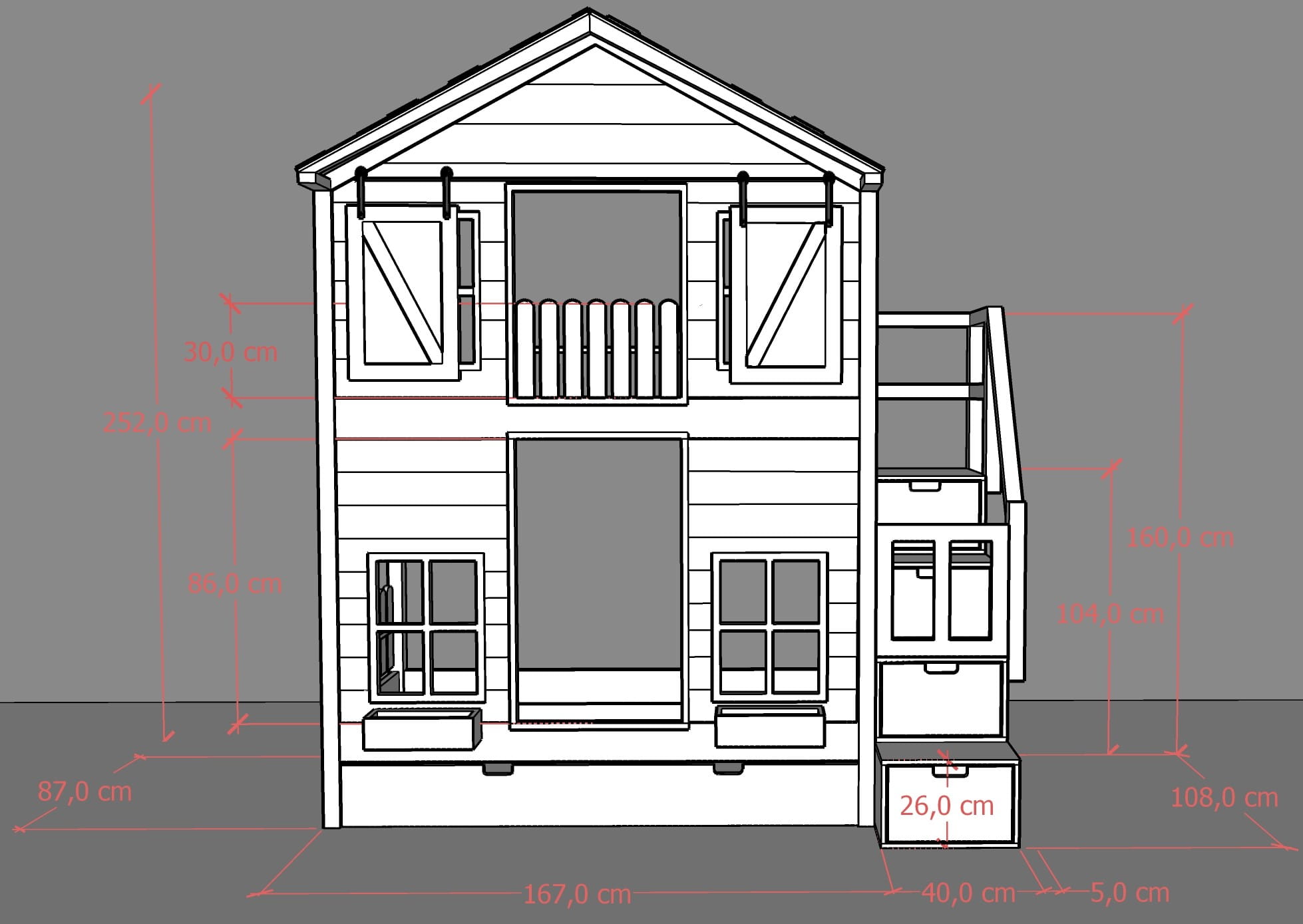 - furtka i poręcz na schodki (jeśli model zawiera schodki).